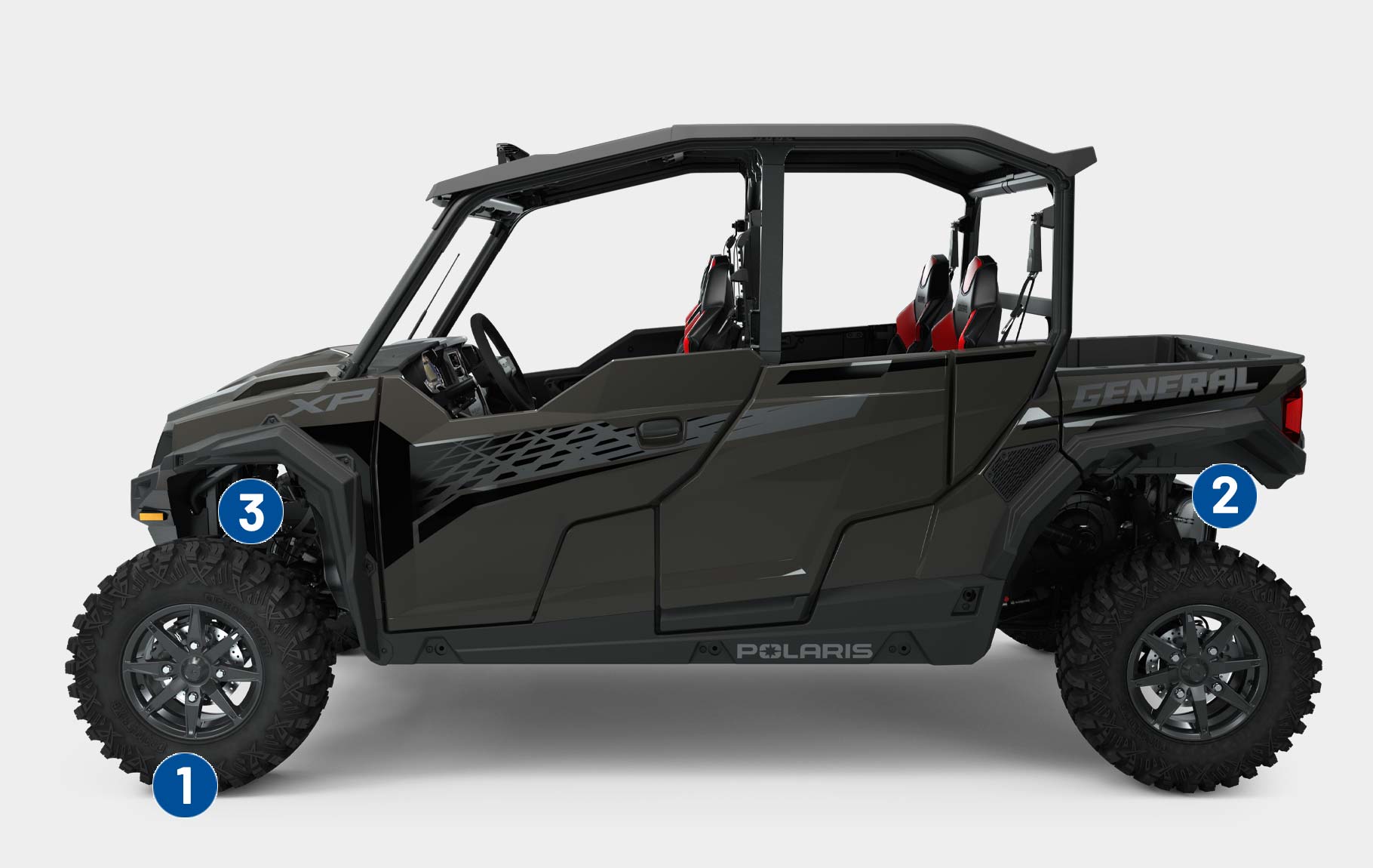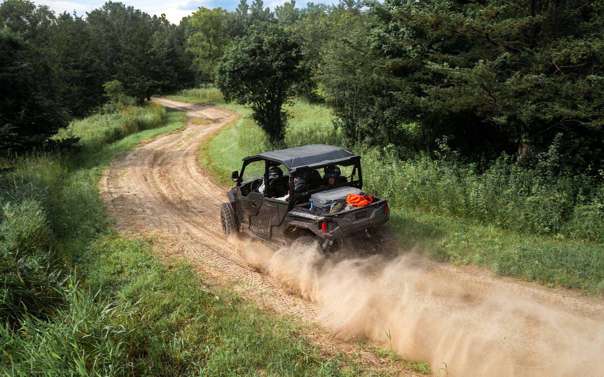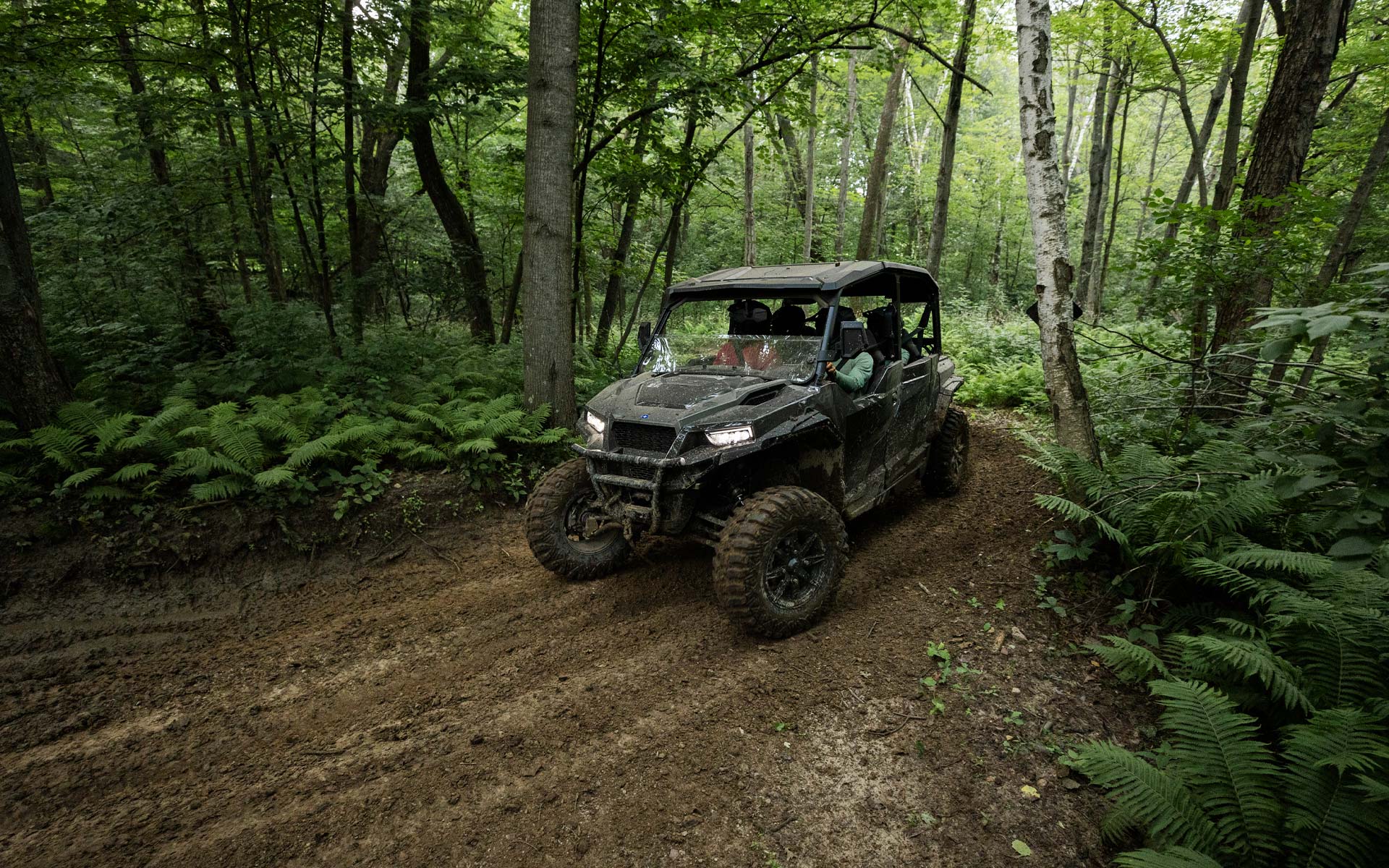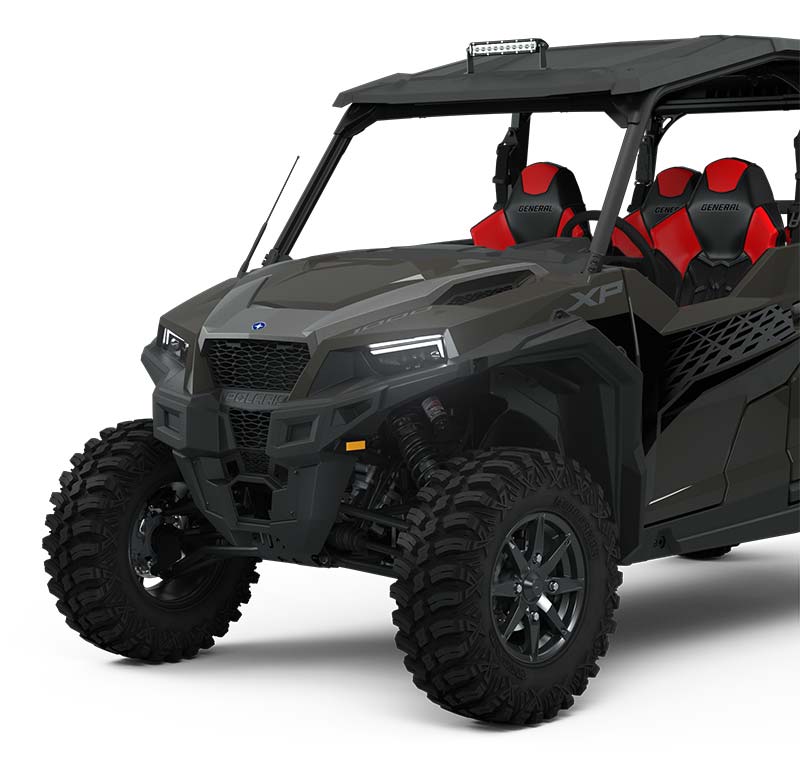 Ao encarar trilhas com o GENERAL XP 1000, você conta com um chassi inspirado em desempenho, motor de 101 CV e tração nas quatro rodas de engate rápido — tudo o que você precisa para dominar qualquer terreno.
