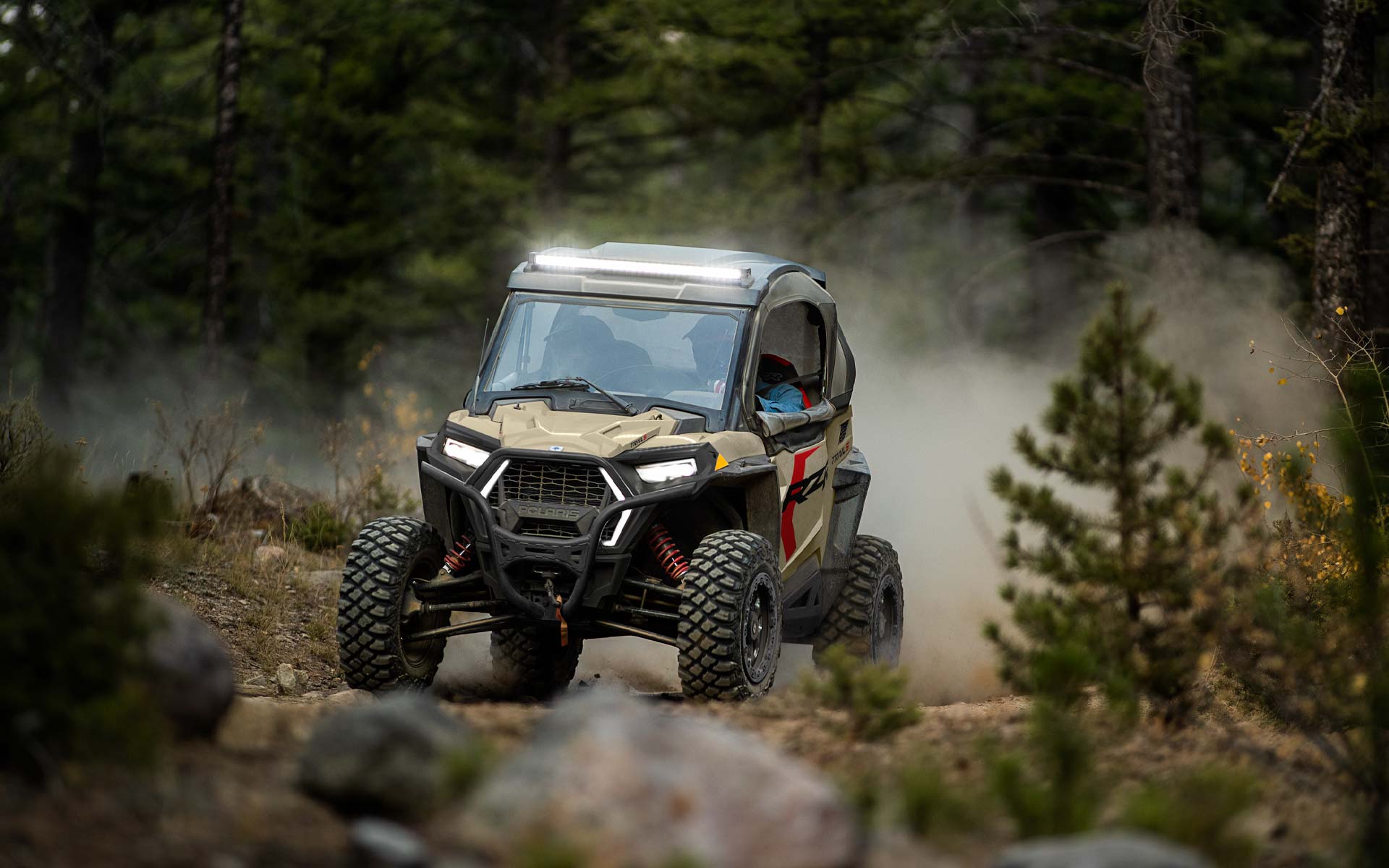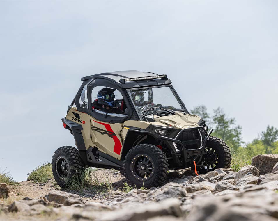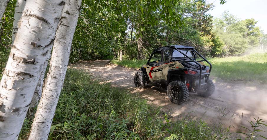 O RZR Trail S oferece uma estrutura estreita, potência responsiva, agilidade precisa e conforto para o dia inteiro.