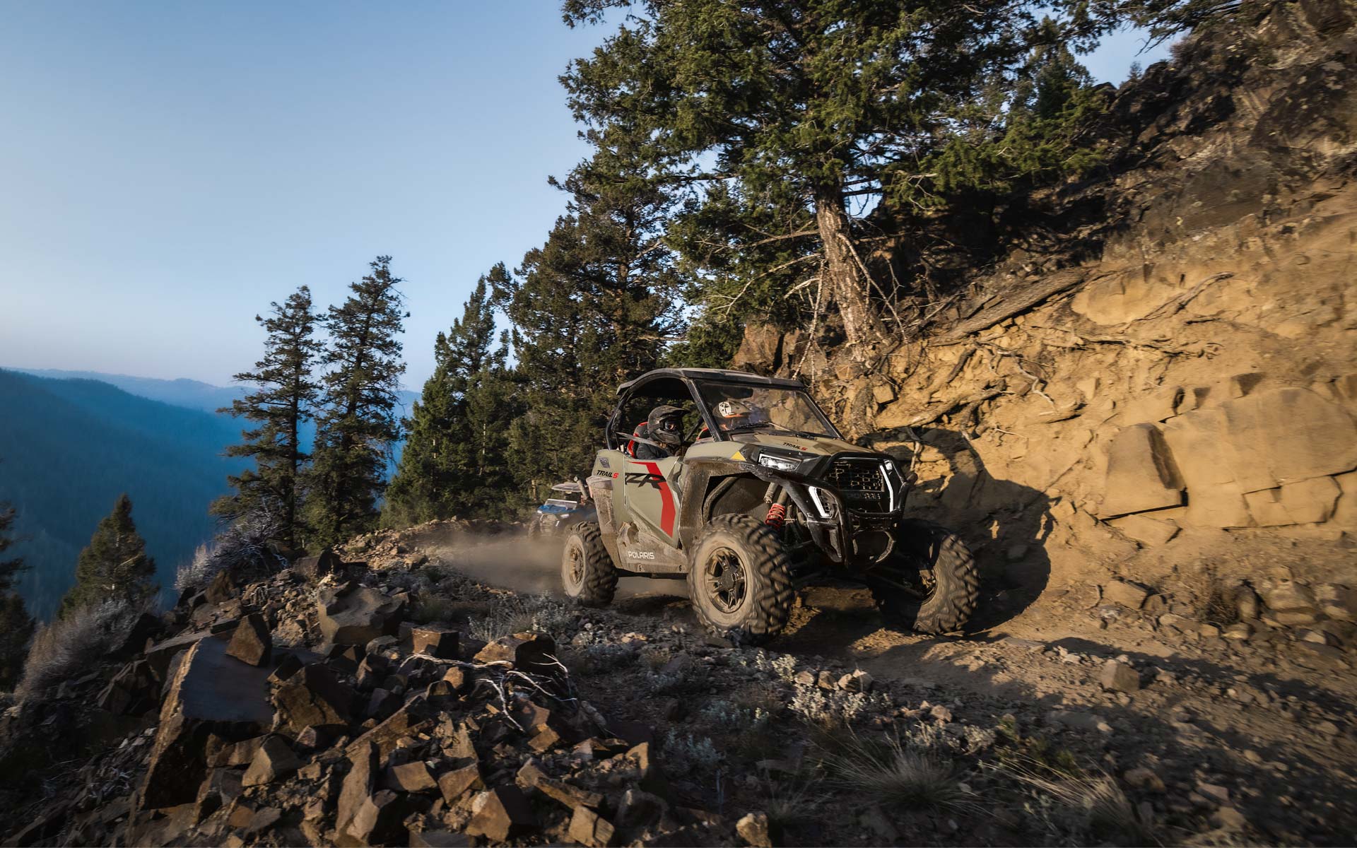 Construímos o RZR Trail S para ser a máquina com aceleração mais rápida, oferecendo a melhor relação potência‑peso da categoria e torque capaz de conquistar obstáculos com facilidade.